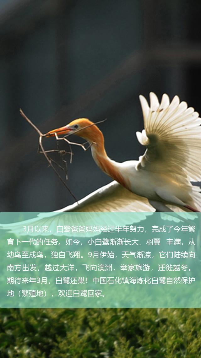 在长三角南翼与东海的交界处,亿万年来,冲积平原淤积成广阔的潮间带湿地,成为全球主要候鸟迁飞区之一“东亚-澳大利西亚候鸟迁飞区”上的重要群栖之地。位于东海之滨的镇海炼化就在这一地带,因为“厂区环境好”引得白鹭来“筑巢”。